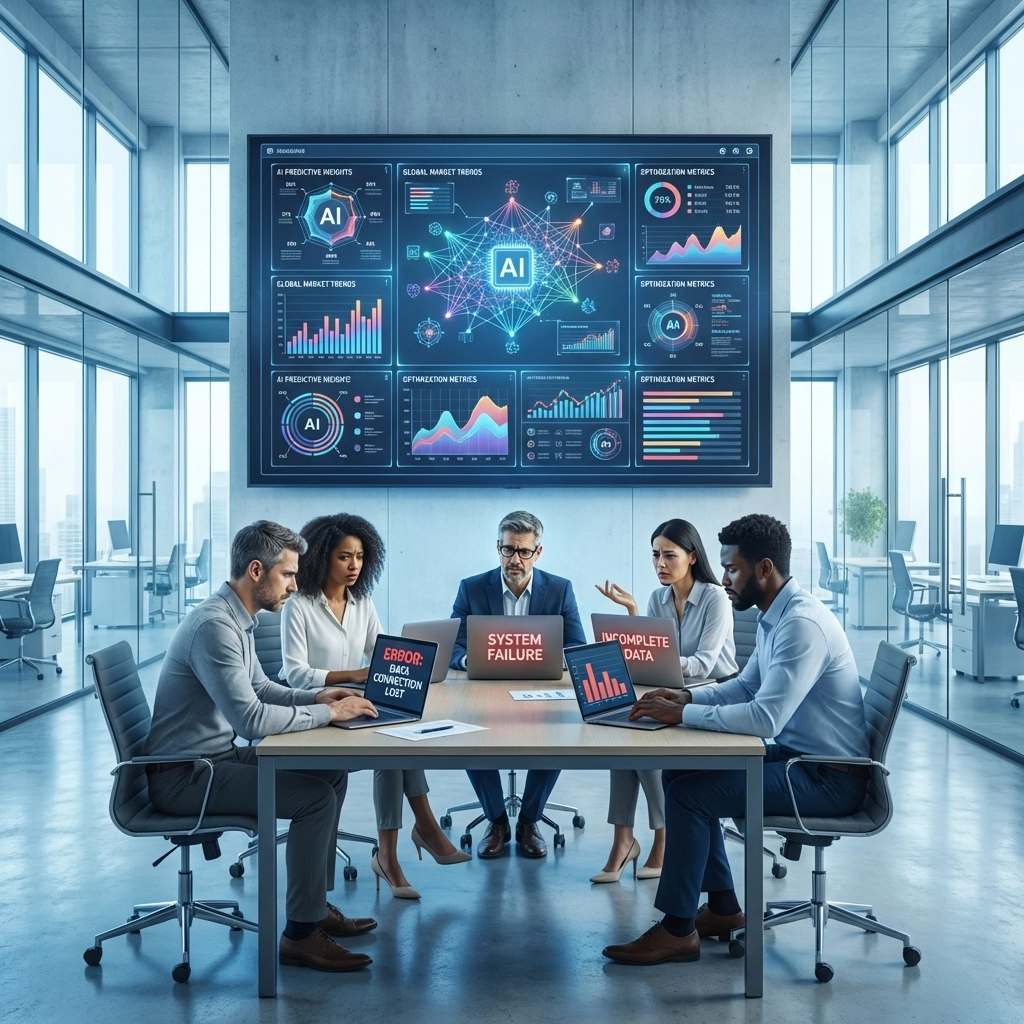• Skills gaps: 74% of companies struggle to scale AI value due to internal capability gaps • Data infrastructure issues: Poor data quality undermines AI effectiveness • Change management failures: Teams resist new AI-powered processes without proper guidance • Unclear metrics: Organizations can't measure AI ROI without proper success frameworks • Technical debt: Legacy systems create integration challenges for AI tools